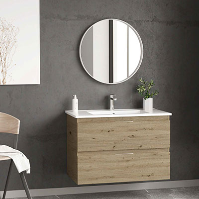 Ensemble de meuble MAYA - amazon oak - l. 80 x P. 45 x H. 60cm + miroir
