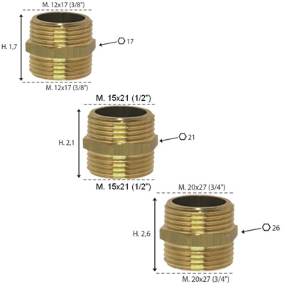BOUTTE - Mamelon en laiton double mâle égal 280 MM 15x21