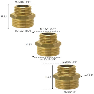 BOUTTE - Mamelon laiton réduit double mâle 15x21 - 12x17 17M