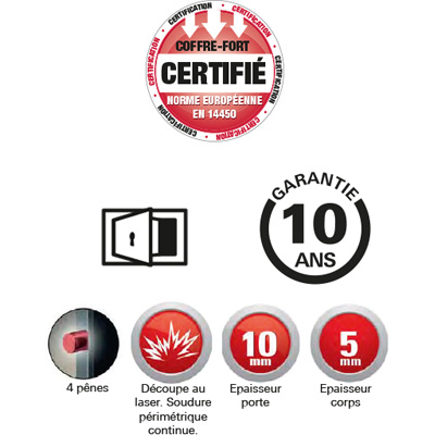 THIRARD - Coffre-fort FALAISE à emmurer - 4 pênes - 390x200x270mm + 2 clés
