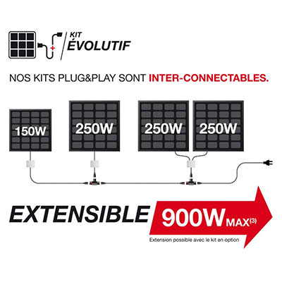 Kit Panneau solaire 500W - IP67 - Onduleur wifi - câble Long. 3m