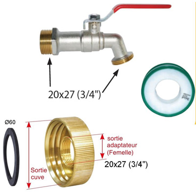 BOUTTE - Kit adaptateur de cuve 1 000 L Ø 60 avec robinet 1/4 tour
